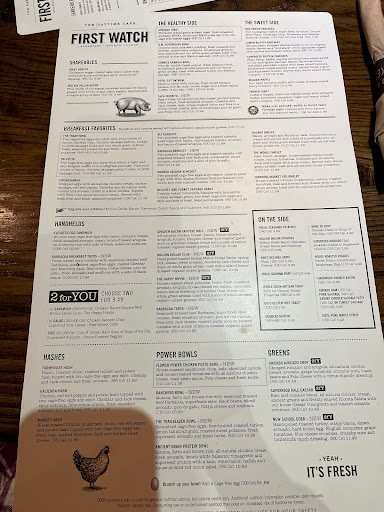 They have good food. The inside is very nice. It seems to be bigger than other First Watch locations Ive been to in the past. I recommend going early because they get packed.