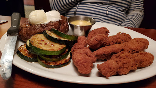 Been several times and more often then not the service was not up to par. Our latest visit my wifes plate had a hair on it. We pointed it out to the waitress she took it the came back asking if a man or a woman brought the food and that the hair was a womans hair and that it was only men that handled the food the hair was less than a1/4 inch I have no idea how the waitress could determine it came from a woman. My wife felt accused and lost her appetite. I asked for a box for my uneaten steak and the bill. When we got the bill the waitress charged us for an entree salad bar for my wife. I did speak to the managed and he took it off the bill but by that time I was pretty upset. We will not return to this location.