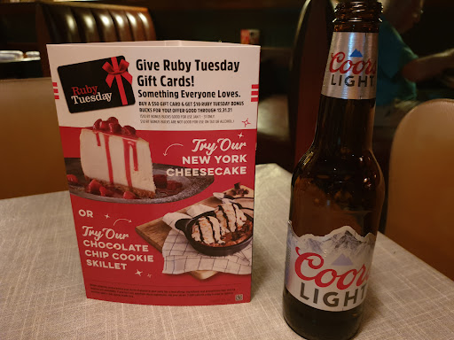 Their services is horrible. I love Ruby Tuesday but when you place a to go online order is always a problem they never greet you in time I usually have to sit here for over 30 mins before someone decides to come out and takes care of the customer.... Today is my last time going to this restaurant.. I dont understand the point of to go online order when you still have to wait over 30 for someone to bring your food out....