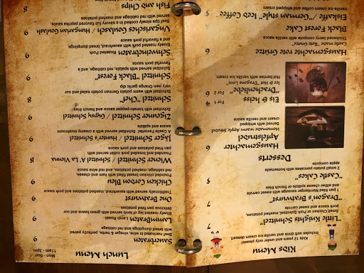 TASTY, OLD WORLD MEALS. TASTEFULL OLD WORLD ATMOSPHERE. You will be WELL FED, & EXTREMELY SATISIFIED, with Authentic German Recipes,. Meals are served in hearty portions, by pleasant -&- efficient servers, who hustle to make this a memorable occassion. Both lunch & dinner choices are everything youve hoped for. Begin with Potato Pancakes, or choose from an extensive selection of Appetizers... Hearty Entrees of Schnitzel, Brats, Bratten, prepared with choices of meats; Beef, Chicken, Pork or Veal. Select sides of Spaetzle or Mashed Potatos , cabbage or kraut. * On tap, true German Brew Selections, + Sangria & Wines. *** Friday & Saturdays offer LIVE ENTERTAINMENT. AN OLD WORLD PLEASURE AWAITS YOU !..!..! RESERVATIONS ACCEPTED