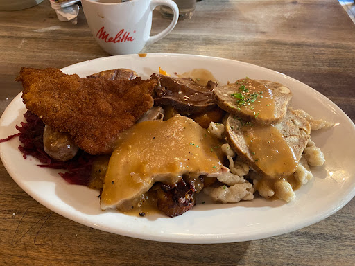 Fantastic lunch/early dinner. Great value, quality, and service. We started off with a couple potato pancakes (delish) w/chunky applesauce, as well as the pretzel with sausage and cheese - So glad the server recommended it. The slices of sausage were delicious. The pretzel was tasty as always. For the main meal, I had the Hunters Schnitzel and my hubby had the sampler platter. Too much food, but everything was fabulous (their mushroom gravy is amazung). This was the first time weve been able to get here since the re-open. Food was incredible, fresh, and hot. Although our server had many tables, she was attentive and our glass was never empty. We will definitely be back.