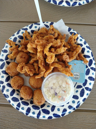 Im kicking myself for not visiting this restaurant much sooner. Today was my first visit and I went around 4. There were no other customers there at first (but people started coming later). The lady who took my owner was very friendly and helpful. The gentleman who called my name when my food was ready was friendly as well. As I was told, their food is homemade and I could tell right away. The taste of everything was top notch and flavorful. From the amazing, swee pineapple cole slaw, tasty jalapeno corn fritters, to the crispy clam strip po boy, I was very impressed with the quality and taste of their food. The Cajun dipping sauce was excellent and I also topped my po boy with Cholula hot sauce. I ordered my meal with a sweet tea and the cost was about $12, which is a very fair price. I devoured everything and was stuffed. There were a lot of fried clam strips on my po boy, which is exactly what I wanted. I would definitely return to this restaurant to try out more of their seafood, burgers, and/or BBQ! Before I left I made sure to tell the owners that their food was awesome and they thanked me.