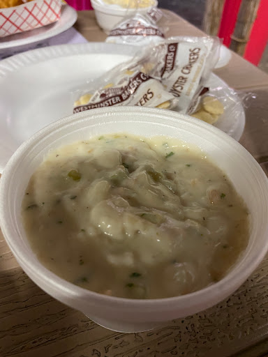 Great hot dogs. They have the big smoker out there. You can smell it all. Brisket was melt in your mouth delicious. Very cute. People that run it are nice people with a nice scense of humer. All outside under a metal roof with thash bundle on top. You have lots of picnic tabls. and fans all over. Even tho it might be hot outside the roof you are comfy under the roof.. They have good fried zuccini sticks crunchy and delightfull. Oh their coleslaw was refreshing it had pineapple bits in there breaking up the heaviness of the mayo and making the slaw light and refreshing. Very nice. There was also ice cream to have and other dishes. Big juicy burgers, fish sandwiches,lobster rolls, chicken sandwiches onion rings frensh fries, and other things Im sure they were all good. I just went for the hot dog and tried a bite of my friends brisket. Go engoy life simple and good.