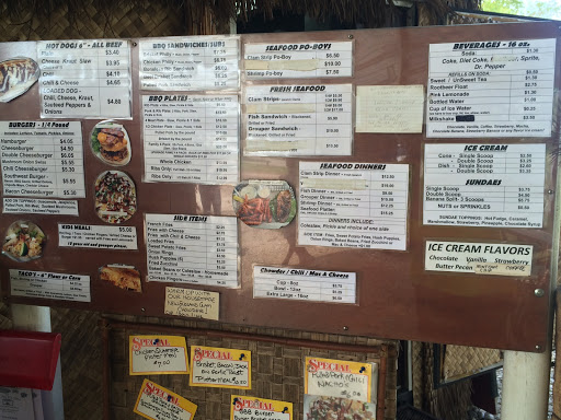 Fresh Seafood. Blackened, Grilled or Fried! Fish, grouper, shrimp, sea scallops, Ipswich Whole Bellies, Ipswich Clam Strips. Homemade Burgers, turkey burgers, cole slaw, new england clam chowder. Excellent phillies, chicken phillies. Fish or shrimp tacos Fries, hush puppies, orings, sweet potato fries. Premium hand dipped ice cream too! Malts, shakes, floats, sundaes, cones, banana splirs