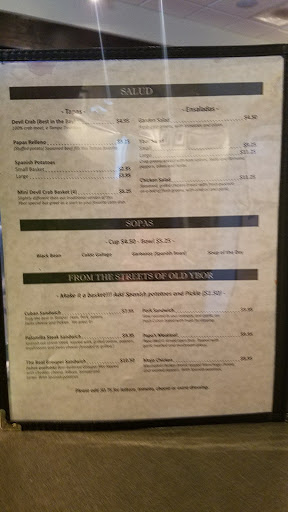 There for early lunch, had devil crab, picadillo bowl, which includes black beans and white rice plantains and picadillo, crab was great, plenty of crab meat,good size also took home a Cuban sandwich, which was great plenty of meat on real cuban bread, to drink sweet tea, it was perfect!, server was attentive and nice. Will be my go to Cuban food restaraunt.