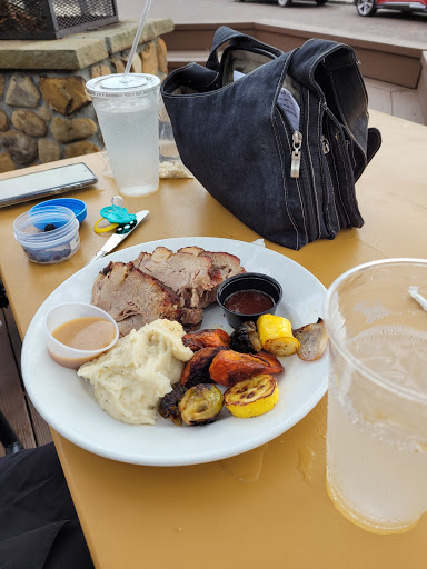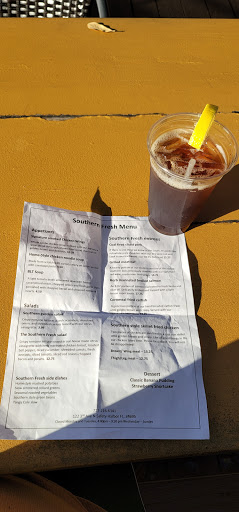 Delicious, southern-inspired food. Wife had fried chicken wings and loved them. Also wouldnt stop gushing about the real, homemade style mashed potatoes. I got their slow-cooked pork. its pork butt that beens cooked for hours and then sliced. Very tender and flavorful. Comes with a lot of fat on it, but easy to cut around it if thats not your thing. The roast mixed vegetables were fantastic. Just the right amount of char on them and nice flavor. They have a nice outdoor seating area with shade (and some in the sun), plus a small inside area. If the weathers really hot, I could see not wanting to eat outside.