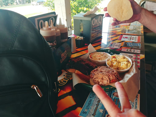 We love BBQ... so we thought we would give On Q a try. Service was friendly and had our drinks quickly... and refills came just as fast. The pricing was a little higher then average. I ordered a half chicken and my girlfriend ordered the pulled pork. Fries were extra and my half chicken didnt come with anything so i added a medium bbq beans. Food came quick and the presentation was decent. My chicken was on the dry side but overall taste was good... for just chicken. As BBQ chicken... the flavor just was not there. The baked beans were decent with a hint of green pepper. My girlfriend said her pulled pork was ok but also lacked in flavor. Our check was $24.02... a bit pricey for lunch. I do not mind paying higher prices when the food is on par with the prices but the food we ate was not representative of a $24 price tag. Probably will not be back because there are less expensive BBQ places with much better food with 5 minutes of this place. Best thing today was the service