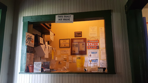 The food comes out fast and its amazing. The staff is sweet and overall service is fine. The turkey ribs are fantastic. Everything is always fresh. Its cheap, our bill is about 25 bucks, and their soup specials are really really good. We have had some issues with the beer coming out a little flat, but otherwise, were always pleased. The atmosphere is really cute and its pretty quiet considering how close it is to the road. So pretty at night. The porch is nice and the inside is well-lit abd comfortable. It gets a little drafty inside, but our server just covers the vent with a phone book. Haha! One of our favorite places. Love it. Definitely try it if youre ever in the area.