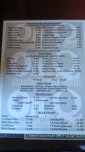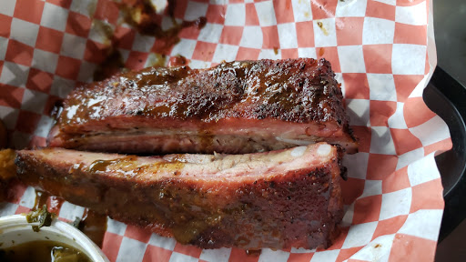 Weve been here a few times now, and noticed that on some occasions the service can be iffy. The food is alright, and can range from good, to.. not. Prices are comparable to other places, but at the time of this review theres no "all you can eat" option. Meat: Pulled chicken is always decent, and is lightly coated with sauce. Ive had the rib tips, which were delicious the first time I tried them, and absolutely dried out the last time that I tried them. (very disappointing). Fries - the fries come seasoned, and they tend to be way over salted.. Im perfectly capable of putting my own salt on my fries. To salt fried as heavily as they do in the kitchen there, is unnecessary and completely ruins the flavor. The seating inside and out is nice, although the place itself is small, it usually has enough tables. nThe atmosphere outside is nice, whereas inside its very basic. The last time we were there, we noticed that the staff were slow to clean the tables, only doing it when someone else came to sit down... not a nice atmosphere to sit in. Something else we noticed was the trash that was left under the tables, napkins plastic forks etc, which we thought was a bad indication of the overall hygiene. Also on our last visit the service was not just slower than usual, but downright sloppy. The server brought the food out and then completely disappeared until we had finished eating and she came to collect the plates, no drink refills were offered until this point and at no time during the time we were eating did she come and check on us. That basically took the enjoyment out of the experience, especially as the rib tips were dry and the fries so over salted that I couldnt eat them. I did comment about the fries and the service to the owner at the checkout, he apologized, but by that time it was really too late. We would probably go back one more time just to see if it was worth giving another chance, but it would be a decider on whether it was time for us to try another barbeque instead... there are a lot of other choices around the area.