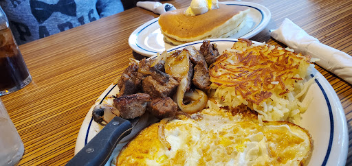 I am very sad to say that I will no longer be eating at this location ever again!! This used to be my favorite location and Ive always made the extra drive to come here but I see that they have new employees/management and the place is getting ran to the ground....The server i had last was not very attentive at all and the steak was expired and made me very ill... the owner says it was just purple dye that the company stamped the meat with (likely story) and the pancakes had no flavor... please do yourself a HUGE favor and drive to a different location.