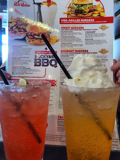 New to the Sanford area off of Rhinehart road the food is traditionally Red Robin good but service has been subpar on both visits so far. Hostess is walking around eating after you wait for her to come to hostess area while she is training someone else at that on this visit. Last time again in back. I could see if they were busy...first time I sat at the bar you would think my service there would be amazing... guess what she was in the back chatting half the time too...todays server took about five minutes to get to my table...guess where she was? And there was only one other table in restaurant and she wasnt waiting on them...ordered water no ice with lemon... it comes without lemons because she has to locate them to cut them and comes with ice...sigh... I ordered fries as soon as I sat and I didnt get them... waitress is talking to the manager about things.... apparently the whole crew including management is very slackadaisical... food has been good but service is so horrible....oh and vet order coffee..who charges $2.99 for a cup of coffee??? today Marie was my waitress...my waitress and the hostess were all on their cell phones instead of taking care of customers..just awful.....I dont remember the last waitresses name but this will be my last visit to this location unless someone else wants to go!!