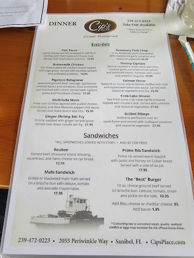 Just returned from a week on Sanibel and had four visits to Cips. Ive been visiting Sanibel for over 10 years now and Cips is a refreshing change to what is on the island. Folks, lets not poorly rate Cips for "nothing special" or "overpriced"...this is a casual eating establishment with quality made from-scratch meals. Trying to compare Cips against a 5-star restaurant is not comparing apples to apples or hoping to pay Perkins prices. Highly recommend: Buttermilk Chicken, St. Louis style rib plate, sloppy joes, anything with their freshly cooked chips and slaw. Oh, they have excellent ice tea and coffee. Clean, comfortable, spacious, friendly staff. Food was well prepared, hot and consistent from each visit. Cant wait to go back.