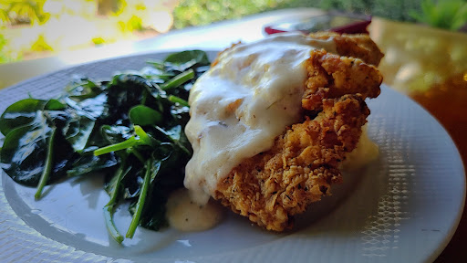 I order lunch from here at least once a week!! Im pretty boring and usually get the same three items but Ive yet to be disappointed! (BBQ sandwich, yum!! The spinach salad with blackened chicken is delicious! I usually order dressing on the side. You have to try the buttermilk chicken!!!!) While I usually order to go, Ive dined in the outside patio and highly recommend grabbing a table there if you go. The servers are friendly and attentive.