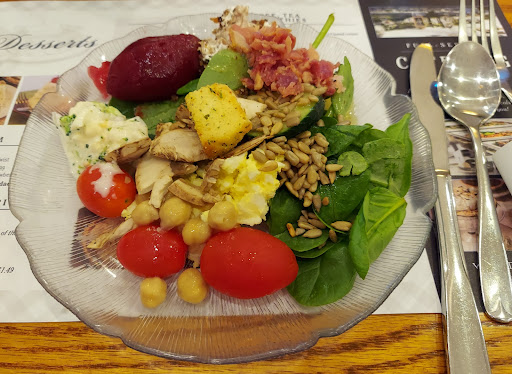 Had dinner from the buffet. Salad choices were good, Dinner items were somewhat limited. Food was good - slightly bland, Chocolate cake was great! My friend commented that the mashed potatos tasted like real potatos. Great service, tea glass was constantly filled. Good overall experience. Biggest complaint is the price. TOO HIGH!!! Buffet with a glass of tea is $18. with tip $20+ per person. For that price I could have went to Outback or Red Lobster. I could see as much as $11.95 for a dinner buffet but not $18 unless its filled with crab legs! Not likely that I will return unless they lower the price or I feel like "splurging"!