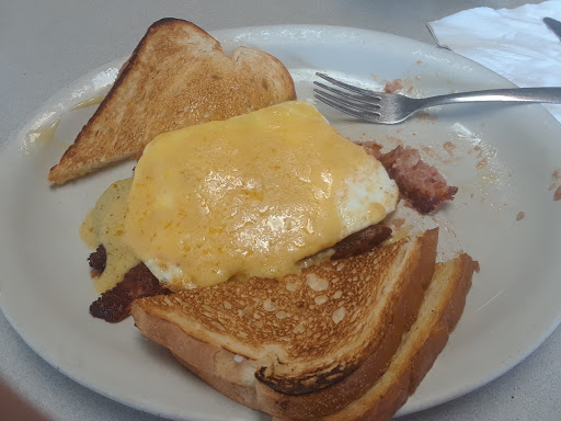 I had 2 eggs cooked over medium... and they were done prefect... had crisp bacon but should of ordered crispy, crispy bacon... grits and they were really good and so was my rye toast... decaf was really good also... will definitely eat there again... for a rainy Saturday they had a decent number of customers....