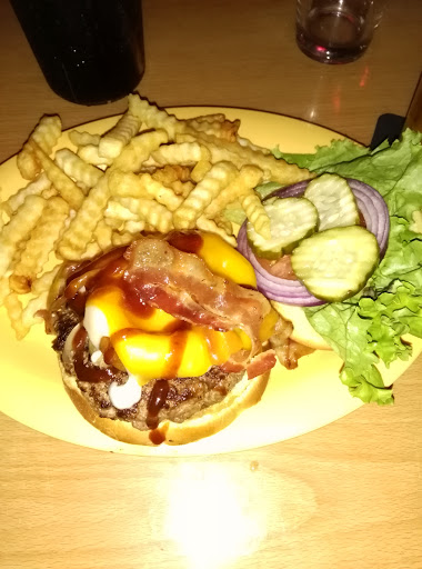 Usually good. Dont know what happened... service was terrible, specially the waitres and the food was meh... worst is that I was seating close to the kitchen window where they put food to be served and my food stood there for 20 mins before it was brought to our table. Then we never got the fries and the pizza which we ordered Hawaiian didnt have ham. We waited almost an hour for food and they didnt get right. Waitress offered to put ham on pizza and put back on oven but we were so hungry we just ate it... Would probably come back but another day like today and I wont be back.