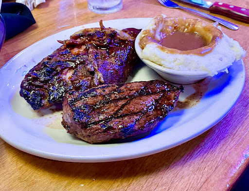 In a nutshell, Similar price point to Outback BUT as soon as you walk into Roadhouse, the atmosphere changes, youre no longer in Florida. Started out with their chili, only downside was the cheese (sub par in flavor compared to plastic) took the cheese out and it was good hearty chili. We were well entertained with what seemed an endless supply of sweet and soft bread rolls and cinnamon butter as we waited for our main courses. I ordered a medium rare Porterhouse T.Bone (26.99 fair price since it was 23oz.) Although my Porterhouse T.Bone was a little on the salty side, somehow it seemed to work. Beautifully cooked, each bite was even more savory than the last. Didnt need any A1 or their house sauce (they taste good but the meat was perfect without them!!)Definitely need to come back and try more of their food.