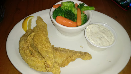 I came here with a group of at least 20, and we ended up waiting 45 minutes for a table. It was hot outside, but hotter inside, then the door kept slamming very hard, and made all of us jump. When we finally got our table on the patio, bugs were flying around the rolls. Then after about another half hour we got our drinks, and it was getting dark. Most of us got our food, and it was alright. One of the people who was in our group waited another 15 minutes because his was burned, and they were trying to make another. That one was burned as well sadly. I ordered a steak, and it was pretty fatty. About ten of us were using the flashlight app on our phones so we could actually see our food. By the time we had actually eaten and payed our bill, it was almost 10:00 pm. We had gotten here at about 7:30. Not to mention the food was kinda cold, and the service was kinda spotty. We have about 3 different servers who kept mixing up the drinks. One took the order, one brought the drinks, then one brought the food. Over all, I probably wont go here again. Im happy to see that nobody else had this problem.