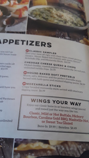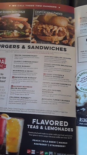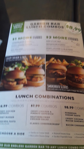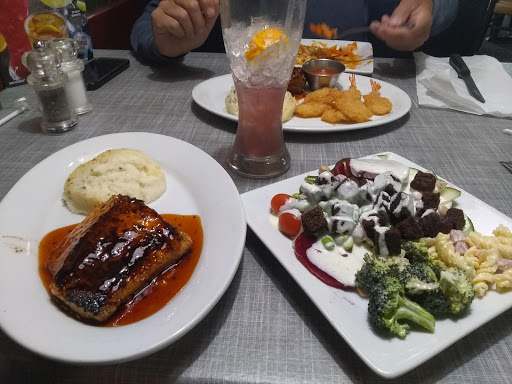 Love their salad bar and apps, Chicken entrees and burgers are great, not fond of the rest of the menu. Love the staff.