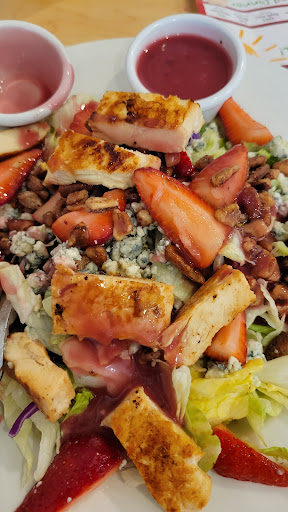 Our waitress was fantastic but the food was slow coming out and some of our order was wrong. I even overheard her and the other servers constantly apologizing to the other tables so they must have been having issues. This was our third visit since they rebuilt the location and all 3 times have been poor experiences. This was the best of the 3 visits but less than stellar. With all the apologizing going on I never saw a manager come around noon and talk to any of the tables. I feel bad for the wait staff there having to compensate. I hope one day they can improve things.