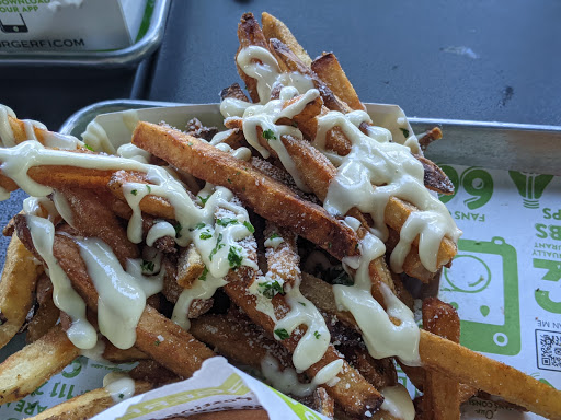 Horrible, we wont be back. First my wife noticed a strange stinky smell when we first arrived. Ignored it and started ordering our food. Paid over 30 bucks for two burgers, fries, onion rings and two sodas. Paid extra for disgusting dried up cheese sauce and special burger sauce. At first thought they had forgot to put burger in my wifes sandwich. Even the worker had to hunt for it and finally found it after walking back with it from the counter. We kind of made the comment "wheres the beef". They did forget to put the bacon on it, so that had to be fixed. After the burger and bacon incident, we didnt feel like complaining about the dried up cheese sauce. Just gave up on that and counted it as a loss. Fries were ok and onion rings were in a pool of oil and fell apart as we picked them up to eat them. There were so many employees doing nothing, we counted 11 in all. Most of them had a look on there face that they would rather be anywhere but there. Frowning and annoyed looking. It was really weird made us feel uncomfortable. Needless to say but we wont be back, people dont waste your money like we did. Should have read reviews before we went there, cause there are several others with similar experiences. Sorry, we tried to like it. Will stick with Five Guys.