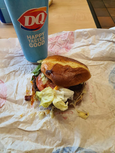 I usually go to the A&W/Long John Silvers just up the road on Friday nights, but they were closed tonight (07.07.16) because their fryers were down, so I came here. I ordered nearly the same exact things I get at A&W so I figured my wait time would be comparable. WRONG! I ordered (to dine in) at 8:20 pm and waited for my number to be called for nearly 40 minutes. (Takes about 5 minutes at A&W). I realize they were busy with drive-thru orders and ice cream orders as well as dine-in food orders, but this wait is excessive. There was at least 5 workers up front and presumably someone cooking in the back, so what the hell took so long? I mentioned to a dining family during my wait that I thought Id aged a year since I ordered and they said, "hang in there, it happened to us too". I also saw evidence that was alluded to in other reviews about they start running out of things after 8:30 at night. They yelled "no more hot dogs" to the frontline crew. Funny thing, when I was 17, I worked at a DQ in Illinois and our crew consisted of whatever girl was scheduled that night and me. The girl worked up front and took orders and made the ice cream treats, and I handled the cooking in the back. (And I helped out up front on ice cream when she got swamped). We had and old cash register with punch keys and a sales tax table taped to it, no food items were "preprogrammed" on a touch screen. So we had to hand write all our orders. And despite that I could still get a food order out in 5 minutes. These people nowadays have it so much easier yet they still cant get orders out fast. They touch the screen to place an order and the ticket pops out for the cook. The register even tells them how much change to give back, but they even struggle to count it out. I just cant understand why the hell people cant be very productive now. But then, back in 1980, we didnt have cell phones!