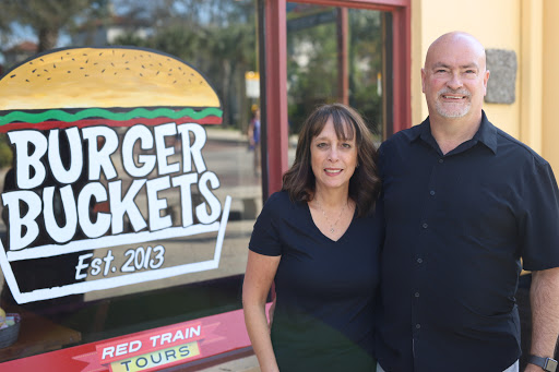 23 June Burger Buckets Update Visited Burger Buckets yesterday with my wife and granddaughters. Their remodeling is complete and it looks AWESOME! There is so much more room throughout the entire space. Even when its busy, someone in a large electric wheelchair like myself, you can easily navigate through it. I had a classic bacon cheeseburger and fry bucket. It was FANTASTIC! Plenty of thick bacon slices full of flavor. Fries were piping hot and tasty. So much food, I couldnt finish it off. Others had the chili cheese dawgs and fries. Their homemade chili was tasty(I had to sample.) Staff was really nice and welcoming(nothing new there.) As always they have earned a 5+ rating. Burger Buckets is definitely a must stop while visiting in the historic part of downtown St Augustine, Fl. It has incredible burgers and hotdogs which makes it a great stop to feed the kids. You can see their great foot long chili cheese dog and fries on my plate. Their dogs are Nathans and in case you arent familiar with Nathan dogs, they are huge and great. They happen to be the special while we were there. For less than $10 books, I got a footlong chili cheese dog, an order of fries that covered a large plate, and homemade lemonade. It was fantastic! It was so much food half of it came home with me for lunch the next day. Along with great food, they are also known for their wonderful fudge and ice cream. We often make a special trip their with the grandchildren for their favorite Superman Ice cream. My favorite is usually Rocky Road or some other something with chocolate in it. With a great variety, Im sure theyll have something for everyone. Another truly great thing about Burger Buckets is their staff. We have been coming here for years and their staff may change out but not their fantastic service. They are awesome with big and little kids alike. They are super patient and generous with their time. OK the two last points that make them AWESOME for visitors and locals alike. They are located along the route of the downtown trollies. The black & red trollies both stop in their parking lot. They are located are just across from the fort and on the last street from down town. Its location makes it an easy location to stop in for lunch, dinner, or just an ice cream on a hot day. For those early birds that are interested in catch a beautiful sunrise of the fort, Mantanzas, or downtown, Buckets also serves breakfast. OK, last thing. For those of you that are really bold. If you think you have what it takes, for 29.95, they have an incredible burger eating contest. It is a delicious mile high burger that can be free if you have what it takes. Now to accessibility. Burger Buckets is one of the more accessible restaurants in the historic area downtown. They have multiple entrances and exits. The room between tables can accommodate large wheelchairs, strollers, and multiple types of walkers. Even with a crowd, there is plenty of room to navigate through the aisles. If you are a visitor, I would like to welcome you to our town If you are a local, I hope we cross paths sometime soon.