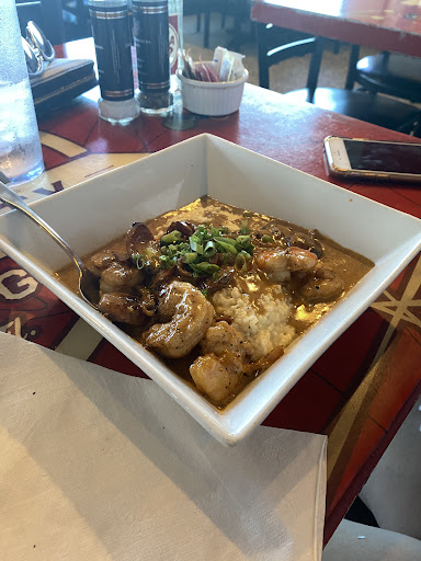 My daughter and I had our first visit to celebrate my Birthday lunch.The restaurant was full , with a line waiting. I didnt want to stay, but my daughter felt we should. Boy, am I happy that we did! I had Jerk Chicken entree. She had Black and Blu chicken sandwich. We shared appetizer of Rueben Ribbons (?) The hostess and our waitress,Brittney, were adorable, professional and attentive. The food was excellent, fresh, well prepared and beatifully plated. We were too full to have dessert, but returned later in the day to just that. The peanut butter bomb, was The Bomb. The brownie was nicely presented but not outstanding in taste. We will be going back! Adorable place, just a little noisy. If you are looking for a quiet, romantic place - this is NOT it. But fun,great food and service in a small cafe.