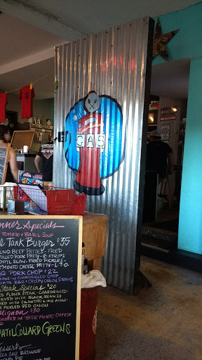 Delicious and unique food, local craft beer selection, and one-of-a-kind atmosphere. My husband and I went here for the first time tonight after reading the reviews. We were not disappointed and have decided that were going to take people here when they come to town to visit. GAS uses quality meat thats been grass fed, fresh ingredients, and fresh fish. They even have rosemary, oregano, and chives growing right in front of the restaurant. The inside decor is really neat. The owners are a husband and wife - the wife was our server and she was fantastic. They have different specials each day - today was an espresso rubbed bison flank steak with a blueberry mustard sauce and pineapple soy ginger chicken. They also have different homemade desserts on their specials board. We started with the deviled eggs (which are brought to your table in lieu of bread). Neither of us have ever really liked deviled eggs all that much, but we finished our plate because they were so delicious. Then we had ordered a cup of the tomato-basil bisque soup (a special) with a balsamic reduction on top. They brought it out in a coffee mug (a cup!) which was really cool. For our dinners, I had the meatloaf, which was a mixture of pork and beef wrapped in bacon with a homemade bbq sauce. The flavor was awesome, and sauce was really good. My husband had the burger Benedict, which was two burger patties topped with tomato, bacon, and bearnaise sauce. He said the flavor of the beef was ridiculously good and the burger was just amazing. Neither of us had gotten the steak special, but asked if we could have a small side of the blueberry mustard sauce. She brought some out to us and it was SO good! We brought it home with us so that we can eat it with our leftovers. I would highly recommend checking this place out. The wait for two was about 30 minutes on a Saturday night at 7:00, and its well worth the wait. Overall, awesome place!