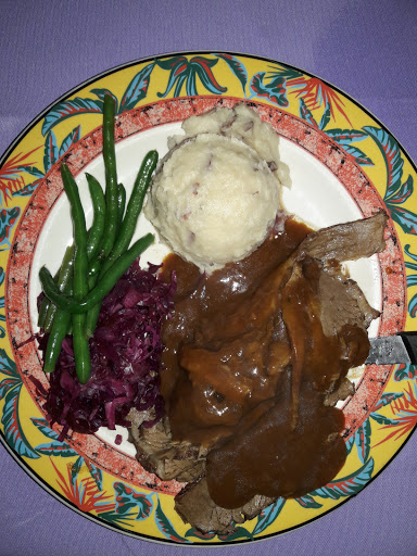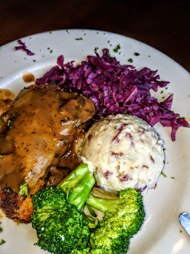 Food can be described in one word, "nasty!" Steak tasted like someone put in a skillet heated it and served it. Shredded cabbage was just that. Beef Brisket was hummmmm, beef brisket. The broccoli was 1 min of steam short from raw. Salad plate was full of water with salad on top. Dressing was water with a little dressing added, (watered down). And yes we had to use a lot of their VERY watered down A1 sauce. We had to use a lot of it for both reasons, (meat was flavorless and space was watered down). Oh, the mashed potatoes were good. Apparently the waitress had a @3%^& shoveled up her #$$. NO personality!