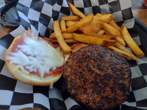 Great burgers, yummy fries! Pizza is really good too! Our service was terrible on our latest visit. My husband and I were halfway done with our meals before our kids got theirs, took forever for refills and when we got them they were incorrect. We thought maybe because we were outside we had been forgotten by the lack of attention from our waitress. I happen to run into the manager inside when I went in to pay and he was awesome and took care of us!