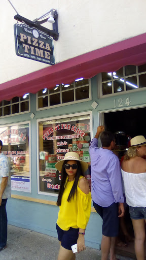 Good pizza. Thats about where it ends for Pizza Time. Conveniently, there are no signs stating that they only take cash. And this wouldnt make me mad if they were not so commanding that you NOT move past the end of the counter before receiving youre food. A female held her arm out just to point out how far may could go. This is because once you get youre food, (in my case; 4 slices, 3 garlic knots) you move down five feet to find a small sign saying "CASH ONLY". And conveniently there is a ATM machine. So now here you are standing in front of this teenage/twenty something girl holding a credit card. And she says "we only take cash". Again, the pizza is good and if I had known I was going to pay an extra $4 dollars just to take out money to pay $20 for pizza, youre damn right I would have gone to another place. But I would have also returned at a later time with cash. Now even if I have a million dollars on one dollar bills in a large Duffel bag and they were the only restaurant open, I would go somewhere else. Its deceptive and unethical. Every person in line behind me had to use the ATM and the girl at the register was very unapologetic about it, but Im sure she has to say it a lot. Because...wait for it. They only except cash. And idiot tourist who try to travel safely and not carry cash get ripped by this type of deception. I said to the girls at the register, "you would think there would be a sign near the door saying "cash only" but she didnt have a thing to say, again, Im sure she hears that a lot. Word to the owners of Pizza Time in St Augustine on St. George St; put a sign out front or stop being so cheap and pay the .00432 cents per transaction it would cost you to get a credit/debit machine. And try to be a good merchant instead of a scummy penny pincher. If you are going to miss that money you get from the ATM machine, just raise your prices. Im sure people will still buy your pizza, not me, but some people will.
