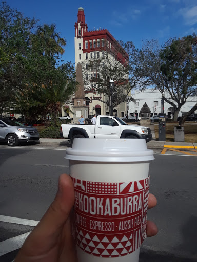 OH. MY. GOSH. As a vegan, I am used to a small selection of coffee and usually falling back on my Starbucks latte because it is good and its trusted for me. I read a review by Jax Vegan saying that they had THE BEST Pumpkin Spice coffee in St. Augustine hands down. Now I am a picky picky person and PSL used to be my FAVORITE coffee before I became vegan. Needless to say, I havent found one I have liked since. My hubby was going on about how I should just give a "different" coffee a chance and so I used my trusty iPhone to look up local coffee near our B&B. This came up as 600ft away. So I viewed the menu and decided I would love to give the Princess Cristan a try. It lists it as "a fancy caramel latte for our fancy royal customers." Since I am pretty fancy I decided that would be my choice if the caramel was vegan (as Starbucks caramel isnt, and it is pretty hard to find a caramel latte that is.) A few short minutes later my husband arrived with a 16 oz cup with a cute Kookaburra wrap, and it smelled delightful. Now I will preface further by saying I am not only a Starbucks snob (if they made a Platinum card for # of purchases I would have it, as the gold card doesnt suffice for me) but I am also a vegan milk snob and usually dont like ANY sweetened vegan milks. I only use Trader Joes Unsweetened Vanilla Almond Milk or the 365 Brand (Whole Foods) Unsweetened Almond Milk as my drinks. I hate, and when I say hate, I returned the coffee to Starbucks for tasting disgusting when I tried the "new" coconut milk they introduced at some point in 2015. I told my hubby NOT to get me coffee if they used sweetened milks. He told me that the milk was sweetened, but ALL the vegan milks were so just to taste it and if I hated it obviously I could go to Starbucks. SO I took a sip. And I said HOLY CRAP, and took another. And I decided that Kookaburra coffee is my favorite!!!!!!!! This coffee was just sweet enough to be a nice treat, but creamy and rich and delicious! I absolutely love it. LOVE IT LOVE IT LOVE IT. And I will be going back today (as I usually get a 20 oz coffee, so I clearly need a second one!) and trying the Mocha Nut (described as "smooth chocolate and creamy coconut bliss" YES PLEASE!!!) I also read that if you call ahead (I read via Jax Vegan) that you can get a vegan pie, full of coconut curry and veggies!! How awesome for a quaint small town to have such a great place and DELICIOUS offerings. It is NOT settling for this coffee, this is a treat that I will MISS when I go back to St. Petersburg. So think of opening one in the St. Pete/Tampa area PLEASE!!!!!!