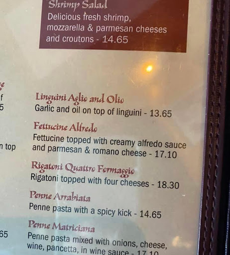 Best Italian food in the area. My wife says its the best red clam sauce from here to Pittsburgh. I like the veal dishes, outstanding. You owe it to your self, you wont be sorry.