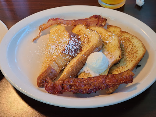 Good place to stop by in the morning. Its quiet and relaxing, the waitress was friendly. I ordered their omelet with mash potatoes and hash brown, it tasted great; fill me up for the day. Decent price for decent food, their pies are also good and free on Wednesday. One of the thing Ill point out is how it looks; they need to keep up with the maintenance, replace rip seats and chip tables and make sure their employees are presentable.
