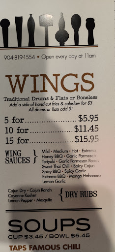 My golf group always eats and drinks at Taps when we play a course in that area. The place is clean and well run. Food is really good, and the wait staff is very friendly. Golfers....take in your score card and get a free beer. The place has a good "feel". Bob A from St.Augustine
