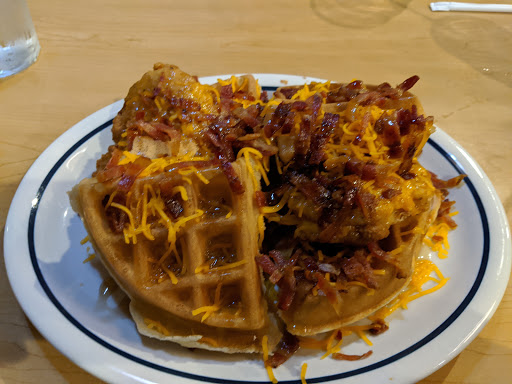 The breakfast here was OK and the staff were friendly enough. Its seemingly more up market to the Waffle House in decor, but the food is pretty similar to be fair.