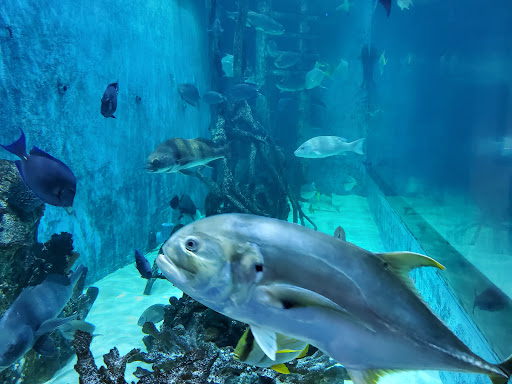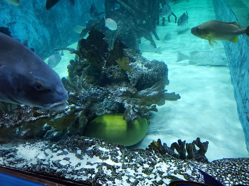 My wife and I went to Rumfish Grill for the first time of course because we saw episode on Tank! Reservations easy to make. You walk into a gift shop which leads directly to restaurant and saltwater tanks. Was met at the door of the gift shop by two gentleman that just started working there and had just a refreshing and positive attitude. They took us to the hostess (who was NOT pleasant and NOT busy and NOT informative at all even though we told her first time there) However, another couple appeared to have the same experience with the hostess and complained and management got involved. We ate the delicious BRUNCH and waiter/waitress were EXCELLENT. We even sat right in front of aquarium. We later had an informative tour and swam with the fishes. We will be back again with friends and family. (hopefully the attitude of the hostess will change as first impressions almost made us leave the restaurant)