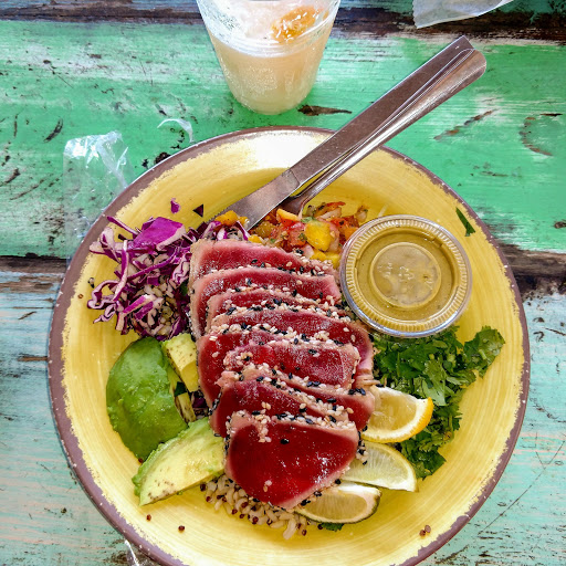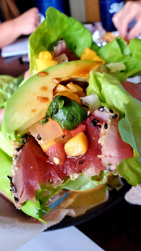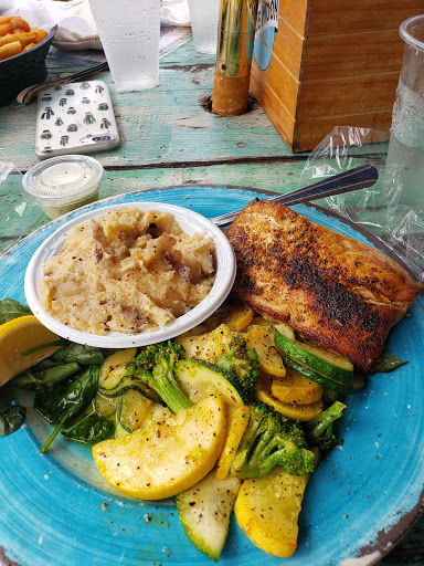 I took the day off for my best friend’s birthday to go jet skiing and to eat at really good restaurants. We spent an hour on the water courtesy of Woody’s Watersports and had worked up a pretty huge appetite. We asked the attendant who helped us bring in our jet skis for a good place to get a fishbowl cocktail – he pointed us to The Toasted Monkey a few miles away. A short trip later, we found ourselves at the St. Pete Beach Howard Johnson Resort Hotel, directly on the water. The restaurant itself is a sports bar at the front of the hotel and a beach bar in the back, literally between the hotel’s pool and the Gulf of Mexico. We walked to the back of the hotel, past the pool, towards the beach bar/restaurant area. In case you don’t know, the weather in Florida in October is perfect: 70’s, sunny, warm enough to still wear shorts and/or a bikini, yet cool enough to not be miserable. We walked through a sand volleyball court, up onto the wooden patio, and picked a table half in the sun and half in the shade of a colorful parasol. The restaurant was just filling up and the seating was first come, first serve. We waited a few minutes before I had to go to the bar and ask for menus. Once I flagged someone down, the waitress was attentive and friendly! Its a drink in a bucket! We ordered a round of drinks: a light refreshing grapefruit shandy, some fruity cocktails, and the requisite birthday bucket of tropical alcohol. I honestly liked these better than the hand-crafted cocktails we had later that evening, but their drink menus aren’t online and I don’t remember what we ordered. But seriously, the drinks were good, strong, and refreshing – definitely worth checking out. I ordered a Bacon Jam Burger, the one with a happy monkey picture next to it denoting a house specialty, and my girlfriend got the Fresh Gulf Grouper, another monkey specialty. The food came, after a bit of a wait, from the kitchen at the front of the hotel and I was honestly shocked at the quality! I’d been expecting beach bar food and I got a foodie experience! My burger was perfectly medium-rare and the bacon jam was spicy and delicious; it paired perfectly with the burger, provolone cheese, and high quality bun. The grouper was flaky and moist, served with tartar sauce on a bun. Grouper Sandwich After we finished and paid, we took a few steps to the Gulf to finish off our afternoon, pleasantly surprised by The Toasted Monkey. I’d definitely recommend it for a laid back afternoon with high quality food on the beach.