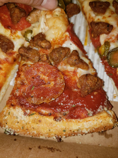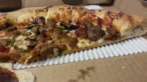 Worst pizza ever ! The only thing it had going for it was that it did arrive hot. When I called the girl introduced herself and asked for my phone number which we had just changed I tried to give the address when she once again asked for the number I said hang on have to find it then she then asked for the address which I had started to give her before then ordered the pizza. We ordered the bacon stuffed crust pizza and made the pizza a meat lovers. The pizza was so thin crusted that you couldnt even pick it up. It also was not cut all the way through. We had to eat it with a fork. The stuffed bacon crust was a joke if there was bacon in there you couldnt taste it prevents see it. Shouldnt have to eat pizza with a fork because the crust wont support the topping. Very disappointed in the pizza.