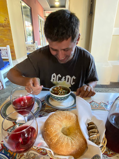 Actually we even didnt have a chance to try food there. It looks like to have a seat you should be familiar with some of the worker ... In other case make sure that you have enough time for waiting... We were asked if we prefer to seat inside or outside. As we were with the baby and it was cool outside so we chose inside. Then we were told to wait 5 minutes as they have to clean a table. After that some women arrived and they took the table because waitress was familiar with them. And then we saw how workers were talking and looking at us like deciding what to do with us now. And i was about to leave as baby was getting bored on my hands... then the waiter told us that the table is almost ready for us ... outside as we asked for... Finally we left and spent a wonderful evening in the other place. Если вы завсегдатай или имеете там знакомых или же просто достаточно времени для ожидания, или соскучились по сервису и отношению времен ссср, то добро пожаловать. Иначе не советую. Не знаю, чем именно мы больше всего не угодили тамошним работникам... или потому что были с ребенком маленьким, или потому что мой муж не имеет никакого отношения к пост советскому пространству, или просто потому что пришли, но мы явно оказались лишними в этом празднике жизни. Но еда возможно и хорошая, не удалось оценить...