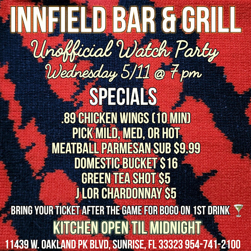 Love the Inn Field!! My go-to spot for drinks, darts, and pool. The bartenders greet me every time I walk in, remember my drink preference, and have my drink in front of me before I even sit down. The food is always good; wings are amazing, and the club sandwich is delicious! I can always count on them to have the game on, no matter what sport. If it isnt on any of the tvs, I ask and they are more than happy to change the channel as long as no one else Is watching. I even learned to play poker absolutely free of charge! My weekend spot(and weekdays if Im feeling feisty). Thank you Lisa and Rene for always being amazing!!! Of course Anna and Mel, and Chef Tony! I love the Inn Field!