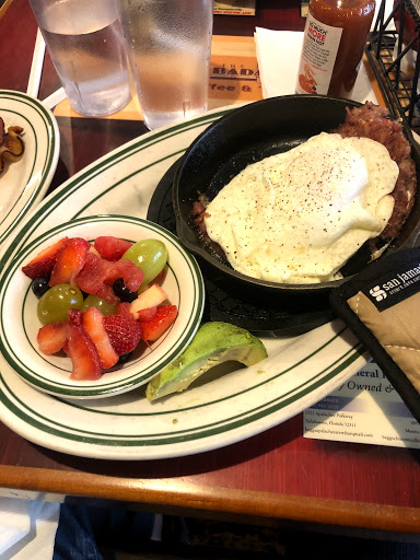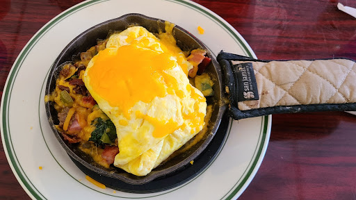 No complaints with the food. I had the garden skillet, which was served on a fajita skillet. Great presentation, very tasty and very hot. The vegetables were cooked just right; soft enough to bring out the flavors without being mushy At 7:00, the place wasnt crowded, which is a good thing as its a small, cramped place. I think it would be a bit of a jumble trying to get coffee when the place is full. My one concern is with cleanliness. It took 4 coffee cups before the server found a clean one to bring to me. Having syrup and other things on the cups when theyve just opened makes me wonder how they clean their dishes. Overall, great food with an extensive breakfast menu, but a cramped, old , not the cleanest location.