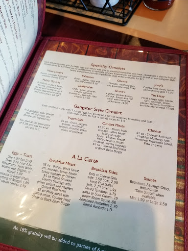 If you like coffee this is the place. The place is a play on words as they are decked out with classic gangster memorabilia. The place is not that big but felt cozy. Staff was prompt and pleasant. The skillet I got was big and full flavor. The country fried steak that my partner got was also tasty. The way you get coffee is a bit different as it is self serve for drip. They did have other espresso and smoothies. Will definitely go back.