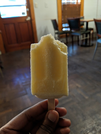 (Warning: young adult visitors from Tampa Bay in for the weekend) I love how it FEELS LIKE A LITTLE HOUSE complete with tables in the little porch and yard. their Saturday evening ‘live music’ events CAN BE QUITE INTIMATE DUE TO THE SMALL SPACE- which was awesome! MY ICED LATTE – mildly creamy, not watery, and only lightly sweet- Refreshing! THEIR NITRO BREW WAS ALSO GREAT- very smooth with almost no hint of bitterness- Great for sipping. Black Dog also offers a handful of pastries and an Ice Cream COOLER FULL OF GOURMET POPSICLES.