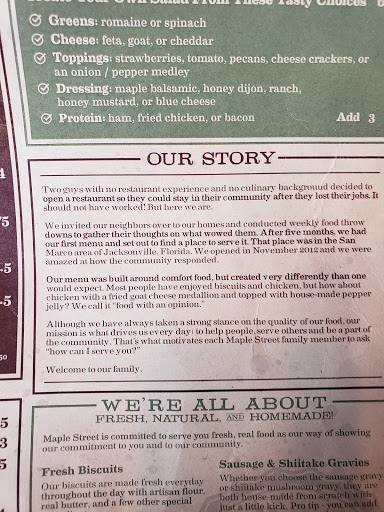 Looking for a biscuit and gravy fix and had googled this place! We totally lucked out! The food; the sticky maple and the Ralphie, was delicious and cooked to perfection. Chicken was amazing. Gravy had the perfect pepper kick! Really phenomenal (and were from Memphis :) you could eat the biscuits with nothing and theyd still be just as amazing. Atmosphere and staff really warm and fun. Very cool. Cant wait to come back and play in Tallahassee so we can eat here!!! Just awesome! Way to go Maple Street Biscuit Company- youre doing it right! Love Biscuit expert and gravy lover, Gracie Curran (& The High Falutin Band)