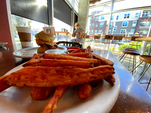 I love this place! The food is great and FRESH because they make a lot of it in-house like their biscuits and the jam (which is AHMAZING). The only thing I would suggest is adding more vegetarian-friendly options to the menu because all of the signature dishes have either chicken or bacon or both, so I usually just order a side of eggs and biscuits and put together my own little sandwich. The staff is amazingly friendly and the environment is fun. HOWEVER, take mind that this isnt a very good place to study seeing as how it is not very quiet and is bustling with people. They serve coffee, but its more of a restaurant than a cafe, so I suggest taking your studying elsewhere. Its still a great place to have brunch with friends or go to for lunch meetings. 5 stars for uniqueness and good quality !!