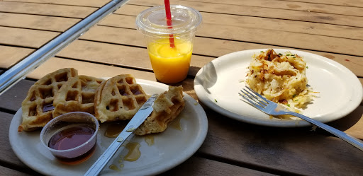 Loved this place! It was a new try for my cousin and I, shes a crazy picky eater and loved every bit of it! The biscuits are made fresh to my understanding with a little of the syrup in them (I do not like syrup, but immensely enjoyed the biscuits). Their system for calling your order was quirky and fun, and the service was delightful. Bathrooms were clean and it was a bit full when we went but it wasnt overcrowded or too loud, think laid back cafeteria style. My cousin and I are both introverts but it was a pleasantly laid back for the amount of people they were serving. Well make this a favorite spot. Parking is a bit crazy, but youll love the food!