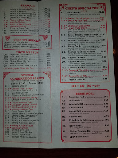 This place is horrible. The food was cold and the stuff that was hot tasted like it was heated up in the microwave. Our server was serving us and eating her food right across the room! I DO NOT understand how this place has 3 and 1/2 stars. The one chicken stuff I did like the cook moved and put something else there. The wontons wernt even shaped right and barley had cream cheese in them After all that, the bath room smelled like rotten eggs and there were a whole bunch of ants in the parking lot.
