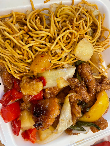 Delicious orange chicken, sweet and sour chicken, noodles and rangoons. Yum! Clean bathroom too.